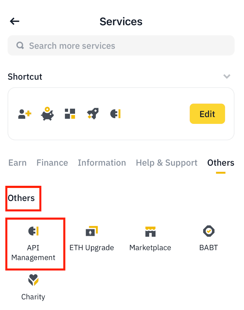 1. Log in to your Binance app and enable the Binance Pro version, and click [More] to access the Services panel.