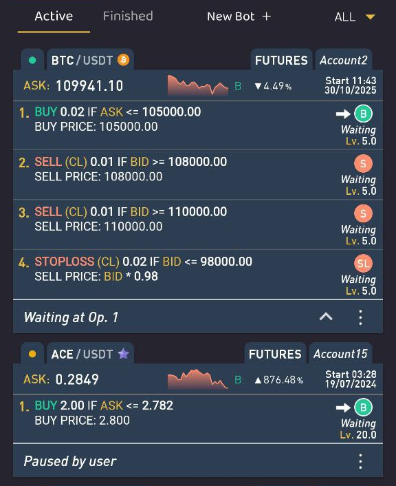 You can combine multiple trades, allowing you to place orders with cryptocurrencies you don't even own when you create the bot.