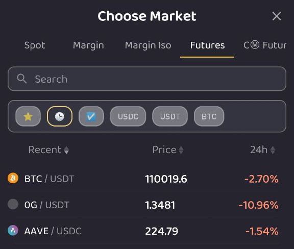 After typing a valid coin for the selected market you will see the ask/bid (depending if you selected a buy/sell operation) value at the top right corner. You can tap it to prefill a desired operation price.