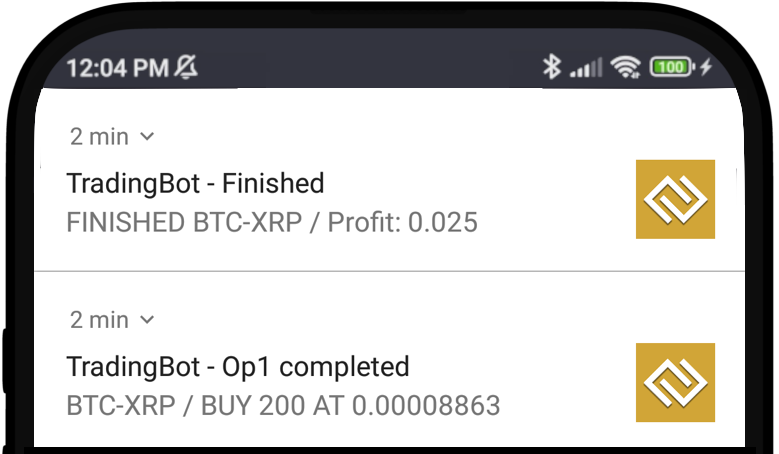 - Bot filled orders notifications: Activate it to receive push notifications in your device when any of your orders configured in your bot is finished.