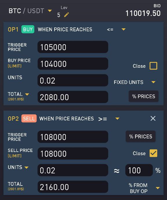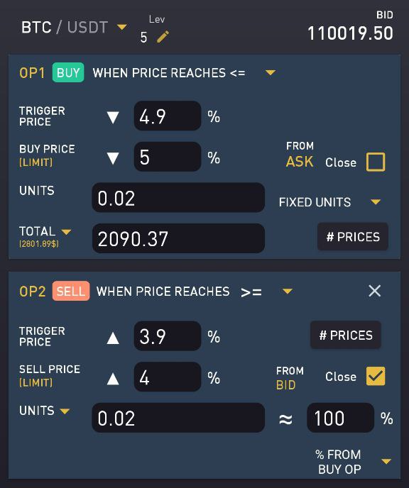 For each operation you can also choose a percentage from BID/ASK to calculate the price instead of fixed values.